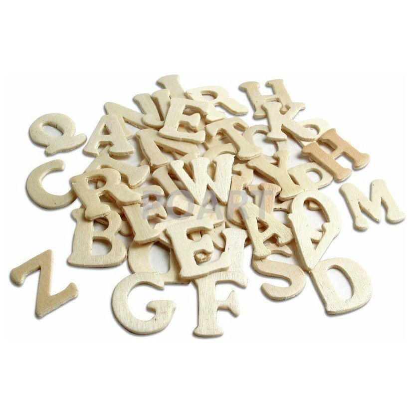 balenie obsahuje 50 ks písmen z preglejky, veľkosť písmena je cca 25 mm.