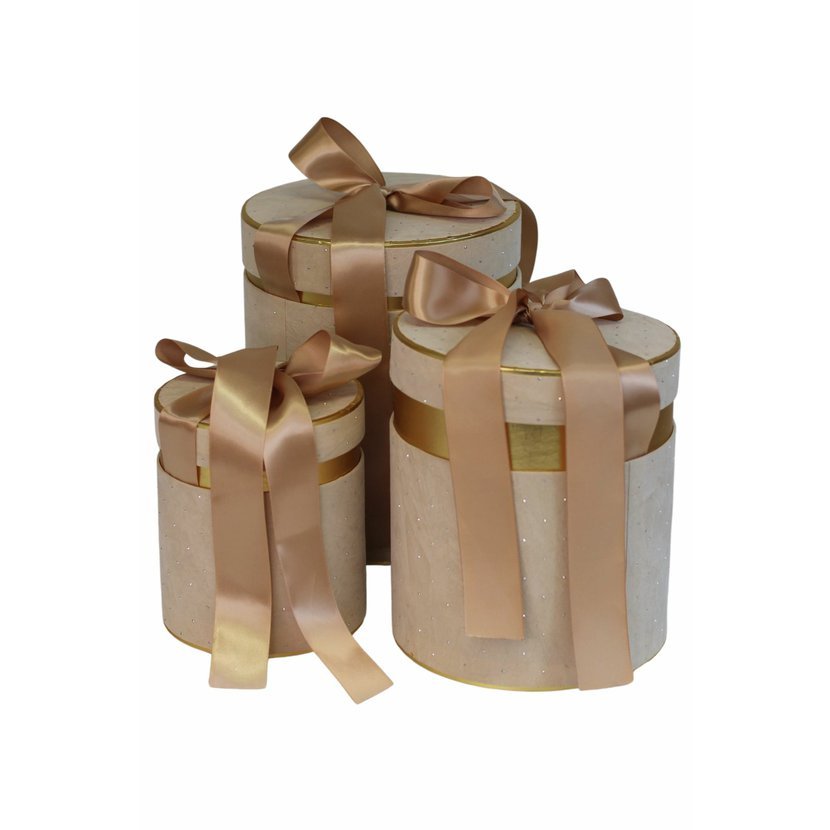 Krásne, okrúhle darčekové krabičky v zamatovom prevedení sú ideálne na balenie darčekov. Tiež ich môžete použiť aj ako kvetinový box.