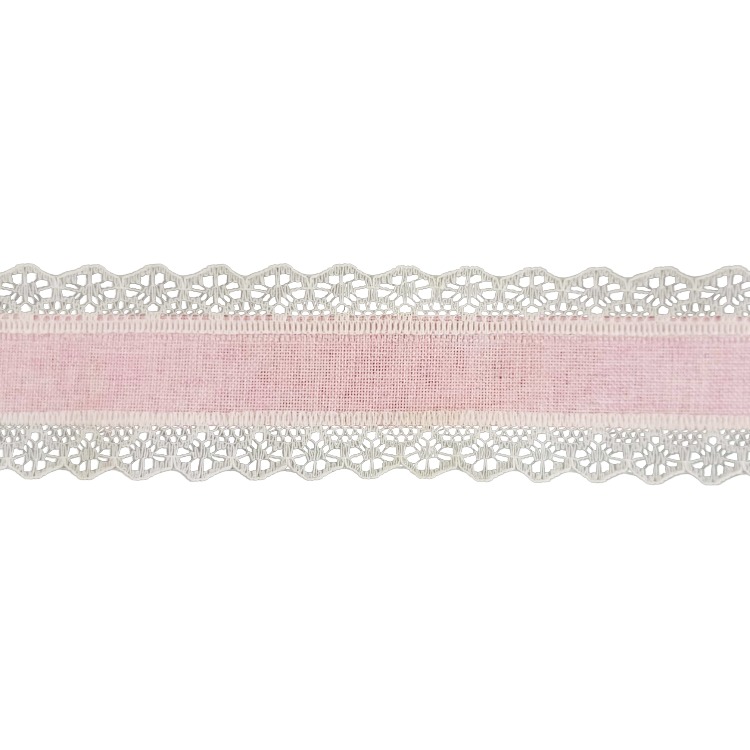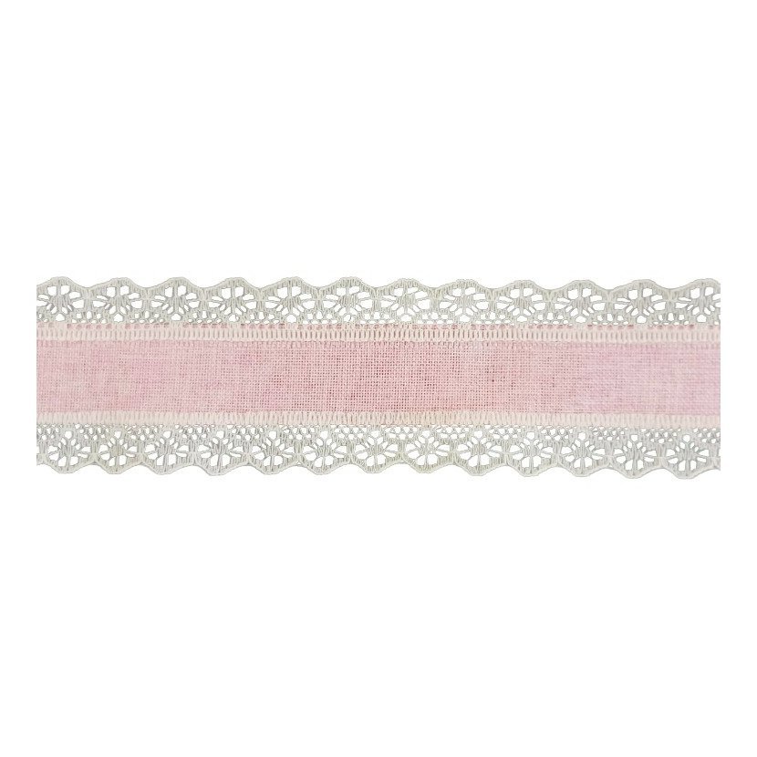 bavlnená stuha s čipkou 40mm, 1m ružová