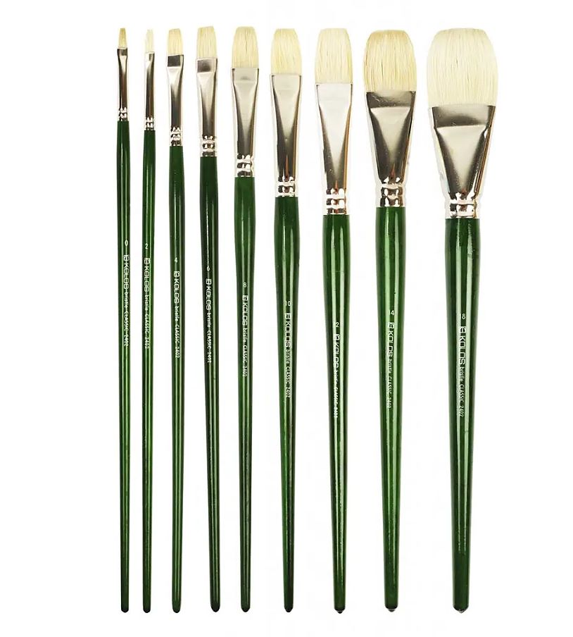 S týmto štetcom sa výborne aplikujú dlhé rovné čiary, a výborne sa s ním pracuje na širokej ploche plátna. Je vhodný pre akryl, olej a gvaš. Vďaka hustote a dĺžke vlákien štetec udrží veľa vody a farby.