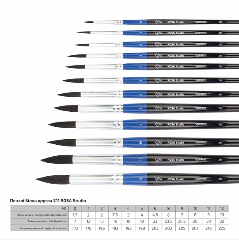 Okrúhly štetec Rosa Studio so štetinami z prírodných veveričích vlasov, umožňuje dokonalé vykreslenie detailov. Štetec sa vyznačuje výnimočnou elasticitou a bezproblémovým udržaním veľkého množstva vody a farby. Určené na kreslenie čiar rôznej hrúbky. Tento nádherný štetec sa používa na akvarelové maľby, atramenty. Štetce sú navrhnuté tak, aby pracovali s akoukoľvek farbou