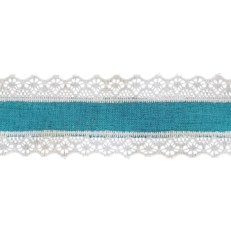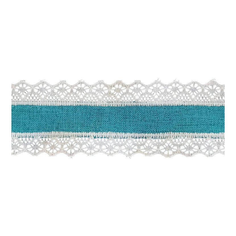 bavlnená stuha s čipkou 40mm, 1m tyrkysová